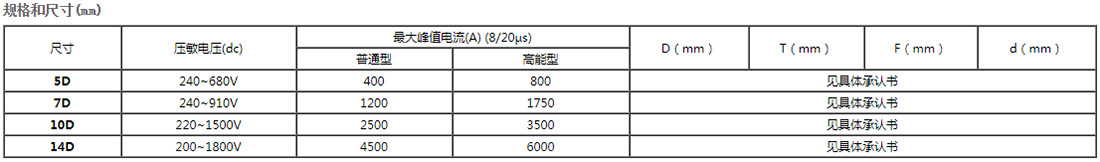 壓敏規(guī)格書